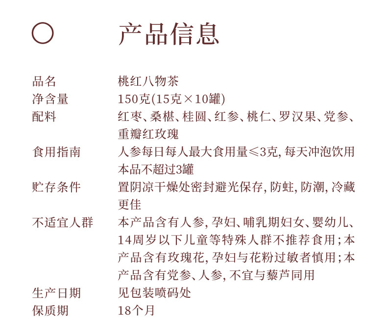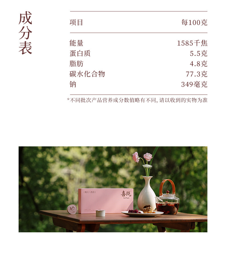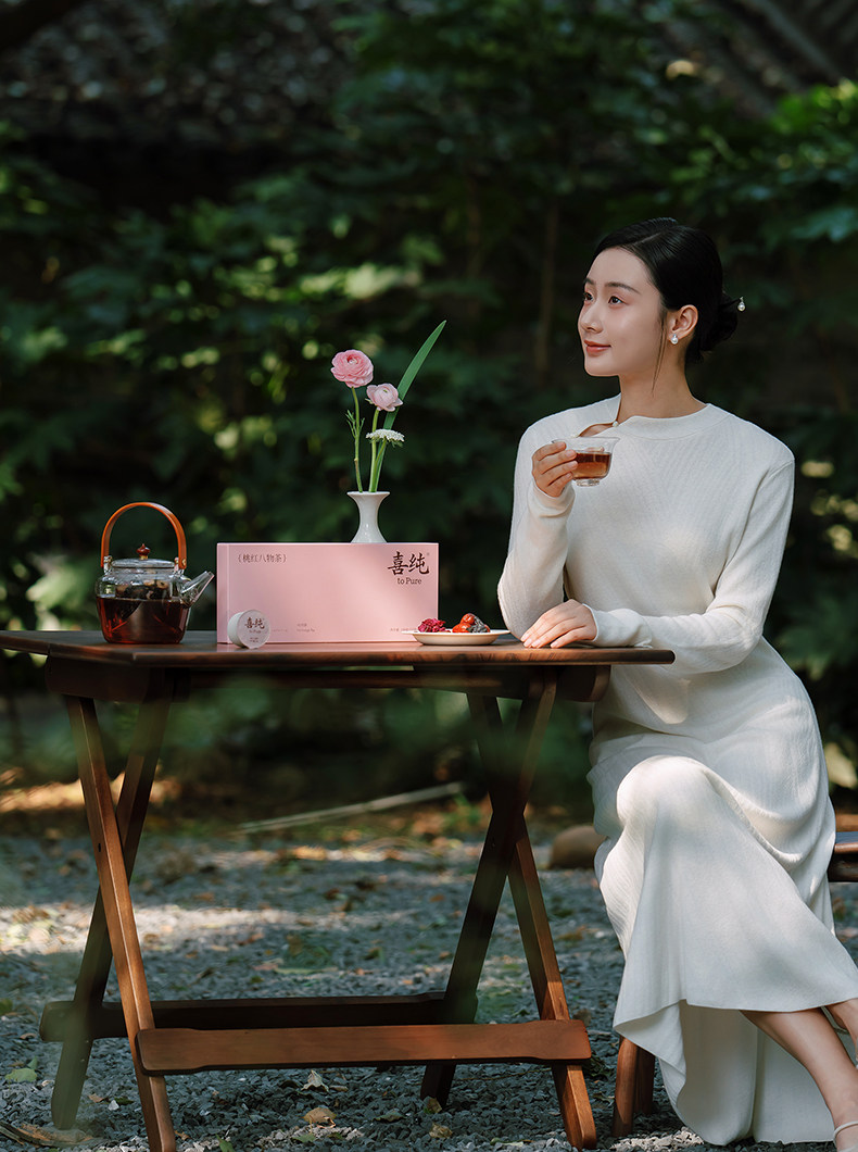 喜纯桃红八物茶红参玫瑰花茶