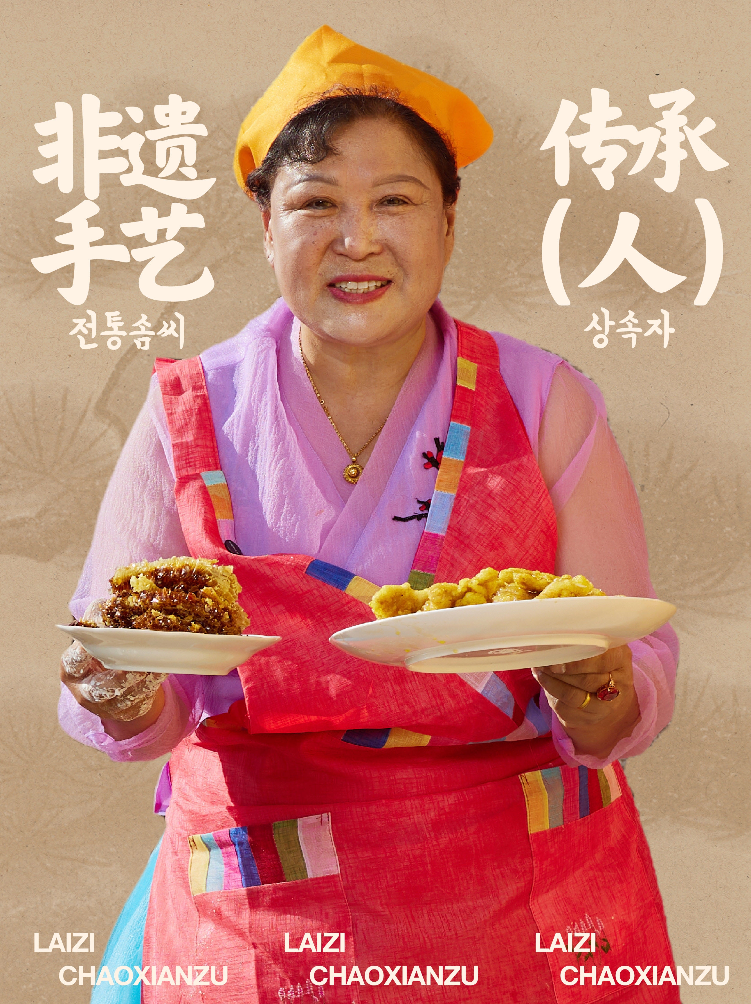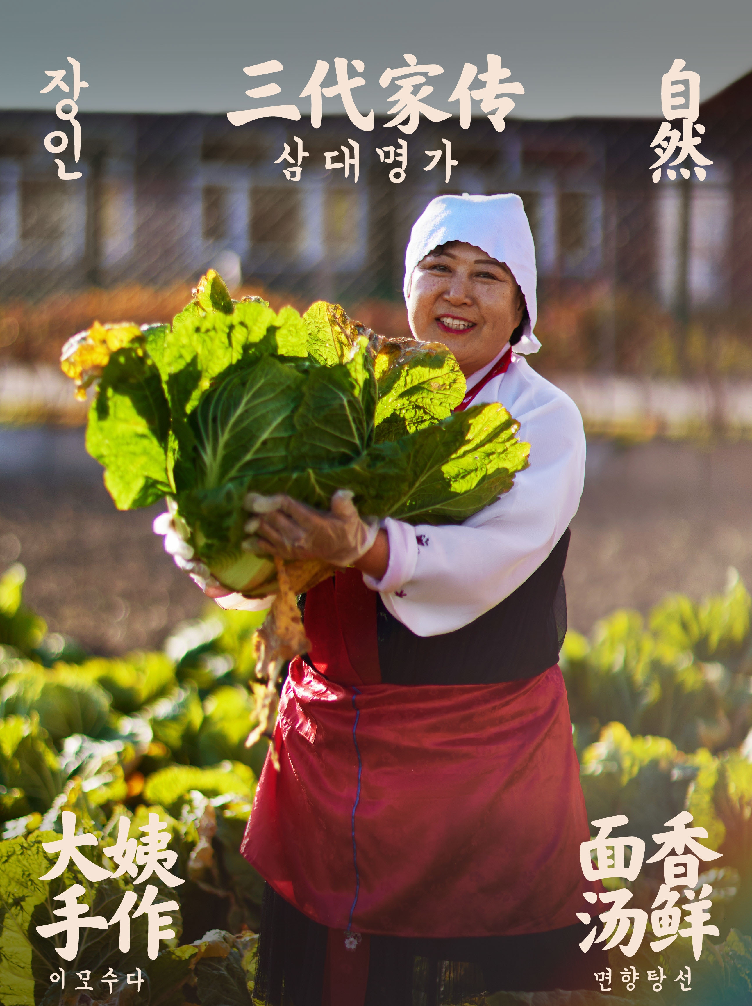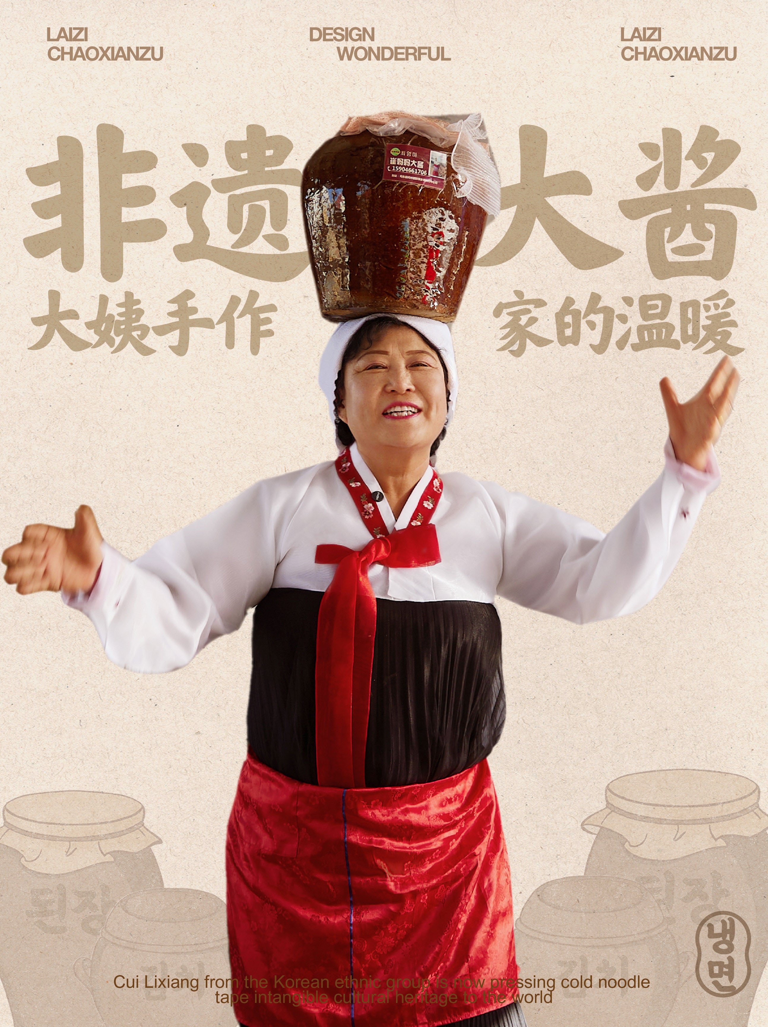 强化大姨朝鲜族冷面、泡菜、大酱的非遗传承人形象❗