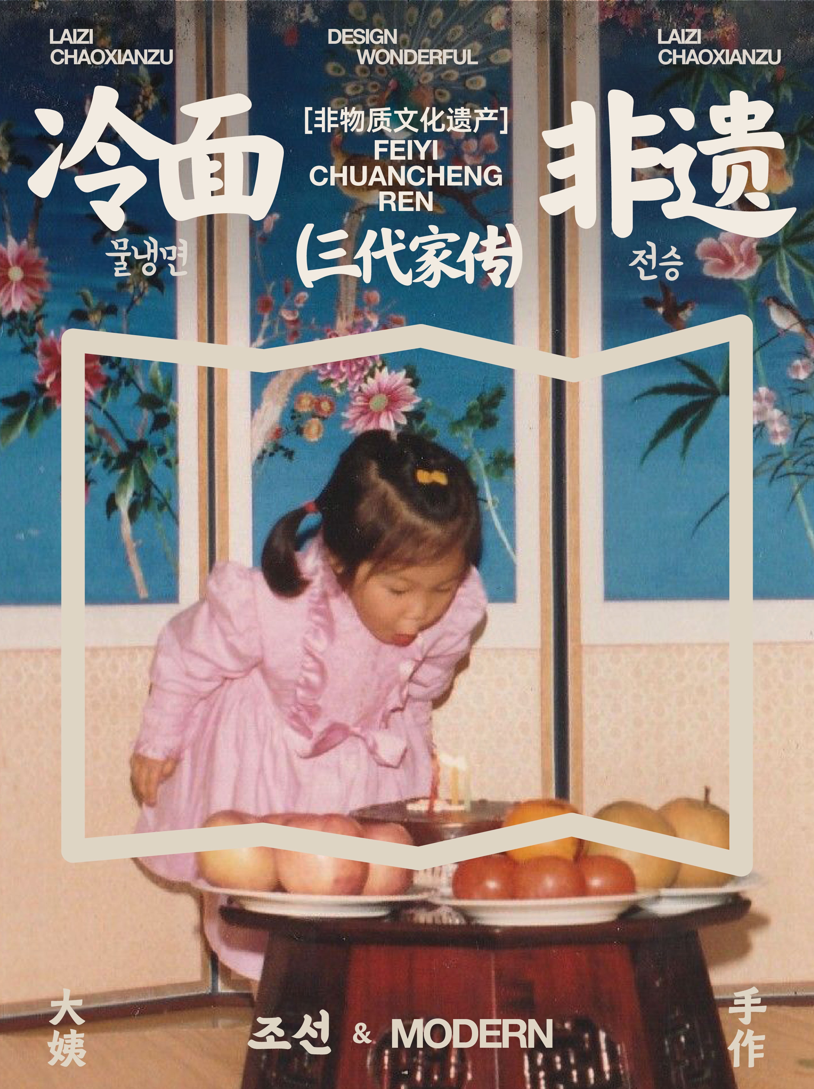 用非遗冷面、家庭小院与洁净温暖代表朝鲜族的色彩相融合,演绎品牌朝鲜族的民族潮色。